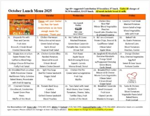 For people age 60+, effective January 1, 2023, the suggested contribution will change to $7.00 for all meals (lunch, home delivered and carry out) and breakfast in Stone Lake will change to $5.00. You will not be denied a meal if you are 60+ and unable to contribute.